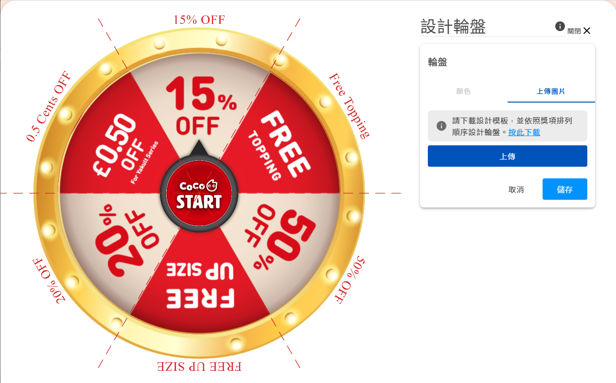 2. 可以自行上傳輪盤圖,提升品牌識別度