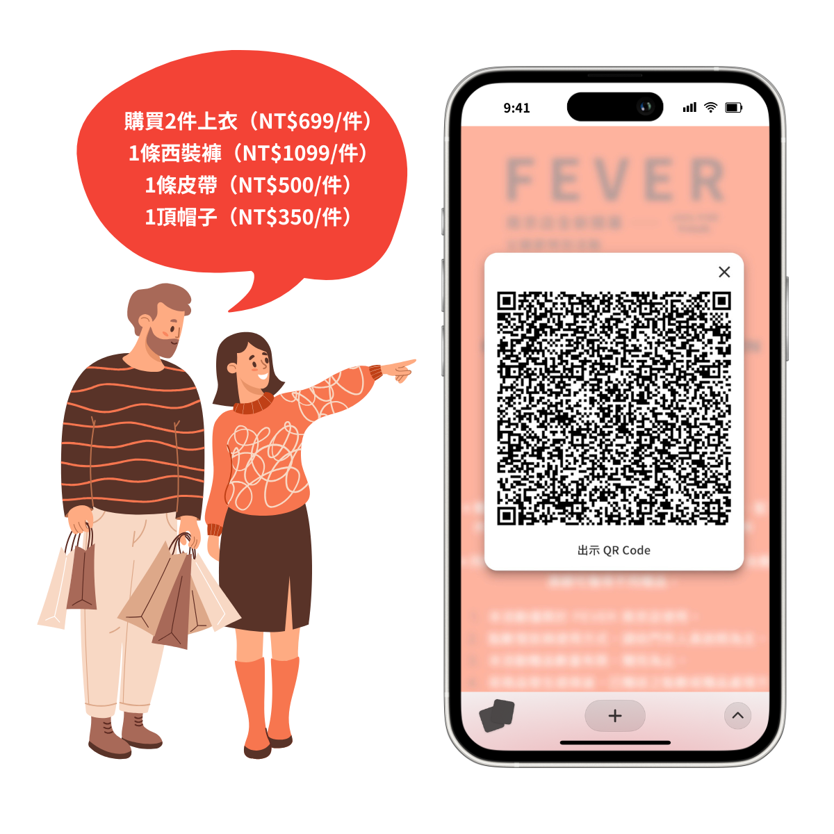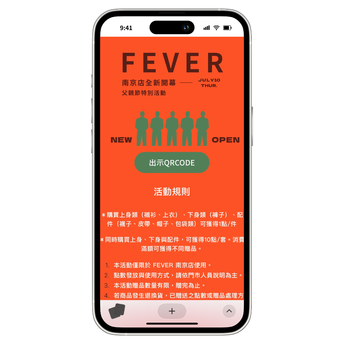 顧客於開幕期間完成指定消費後,出示QRCODE供門市人員掃描