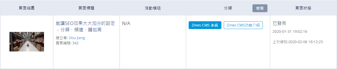 應該將不同的內容頁面加以歸類