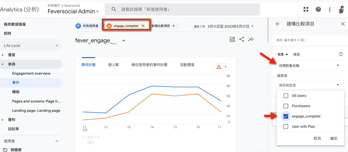 這樣,未來就可以比較這群受眾在參加活動後,轉單的行為比例。