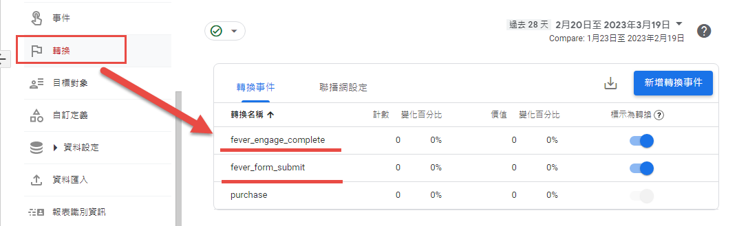 開關打開後, 你在轉換設定, 就可以看到活動的轉換事件。