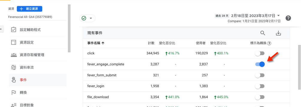 如果你有開啟活動設定報名表格,我們會在網友成功完成表單送出時,紀錄第二個事件:fever_form_submit。