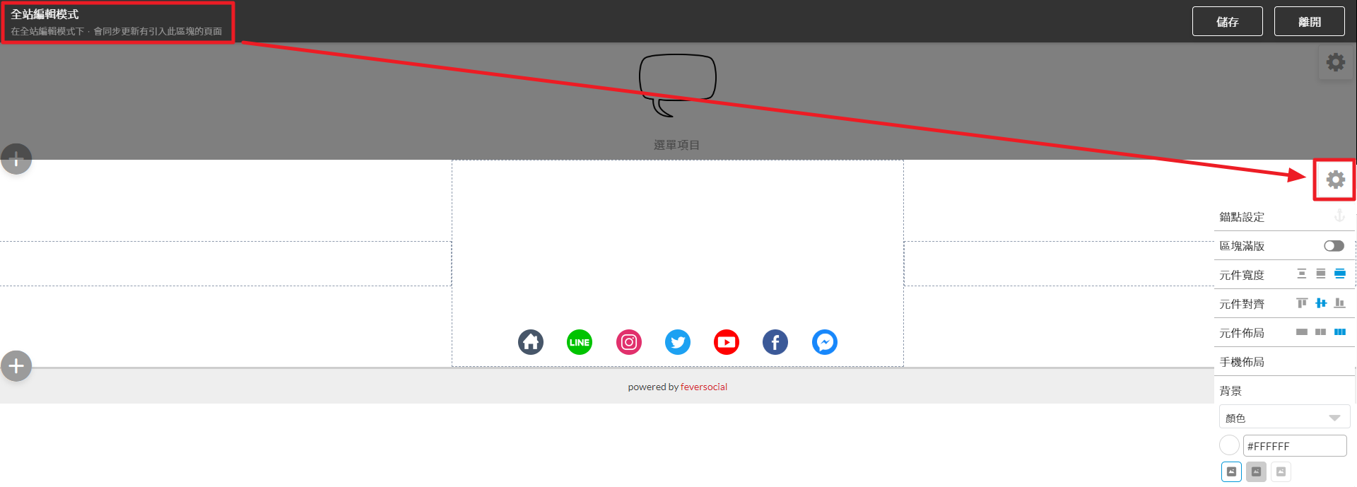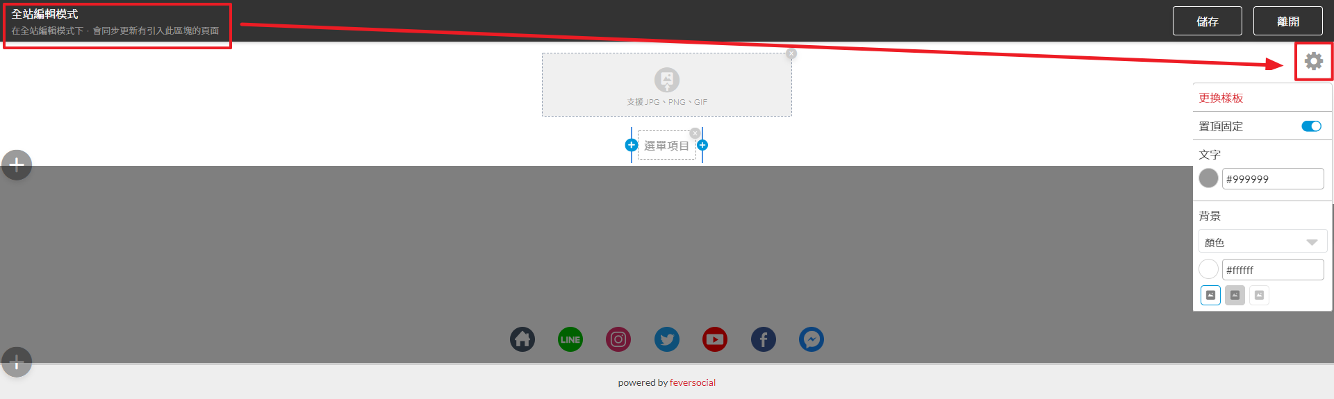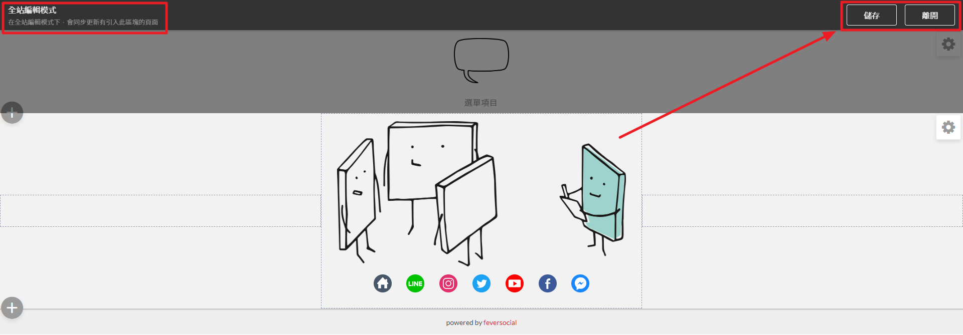 點選右上方儲存/離開將關閉編輯模式,頁面將會轉換成「首頁編輯模式」