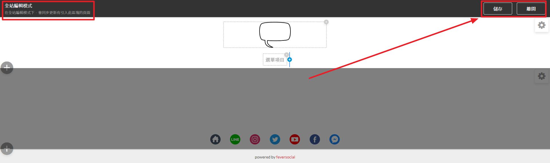 點選「離開」資料將不會儲存,誤按離開,您仍然可於首頁編輯模式中再次點選「儲存」將頁尾存起來