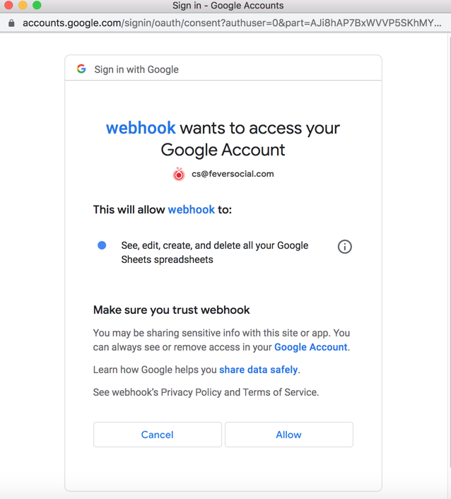 目前後台尚無法直接授權 Google 文件的寫入權限,但你可以透過 Google Sheets 的內建功能產生一個 Webhook 網址來做串接。以下就帶你一步步操作產生 Webhook 網址。