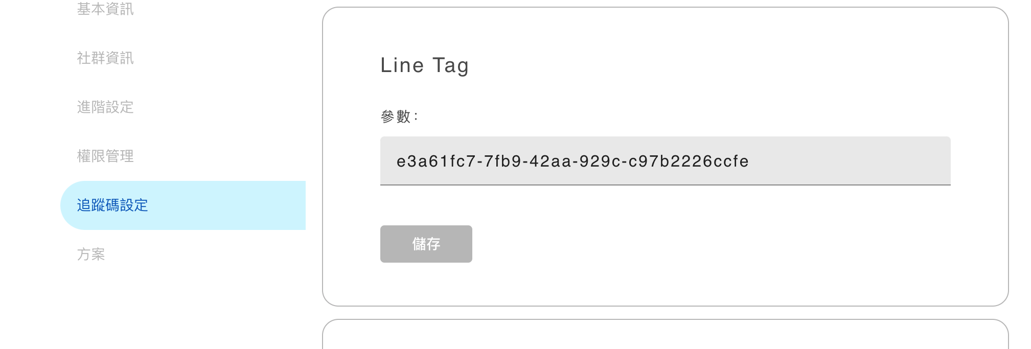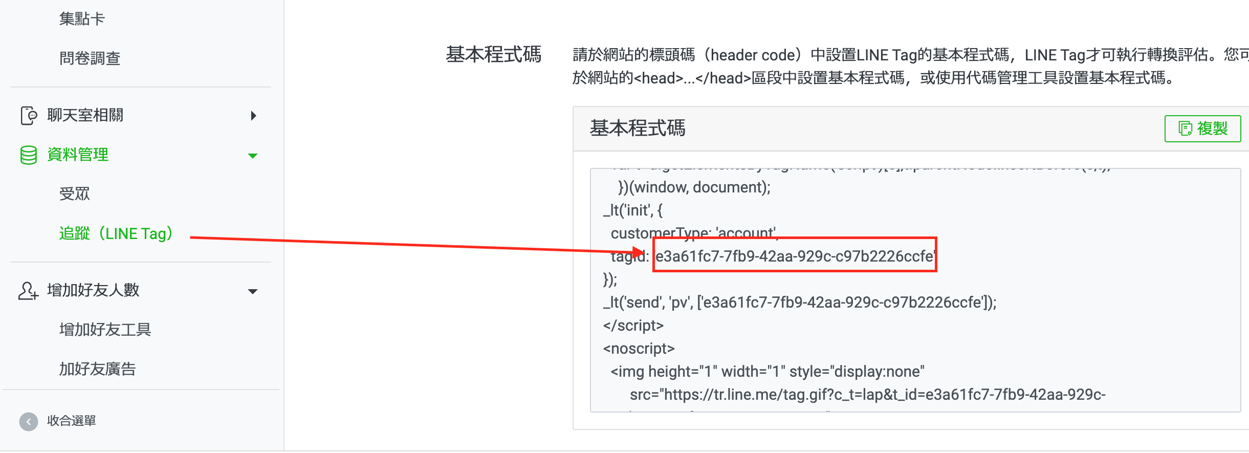 這個 LINE Tag ID 是基本程式碼中的 tagId 那段亂數。