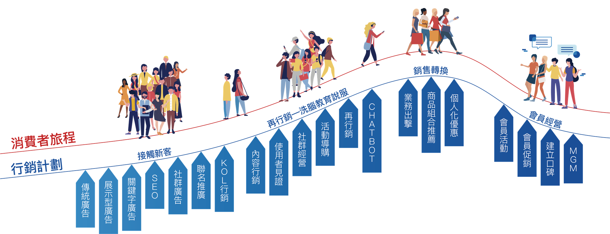 在人口成長緩慢的市場裡,經營顧客的回購及朋友轉介是確保業績不墜的不二法門!建立自有的顧客數據庫及溝通管道,企業達到以下目的: