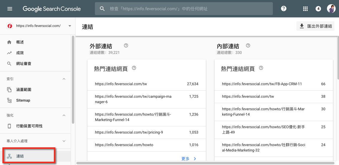 輸入網址,就會計算出你的網站上有多少內站 (internal links ) 以及外站連結 (external links)。