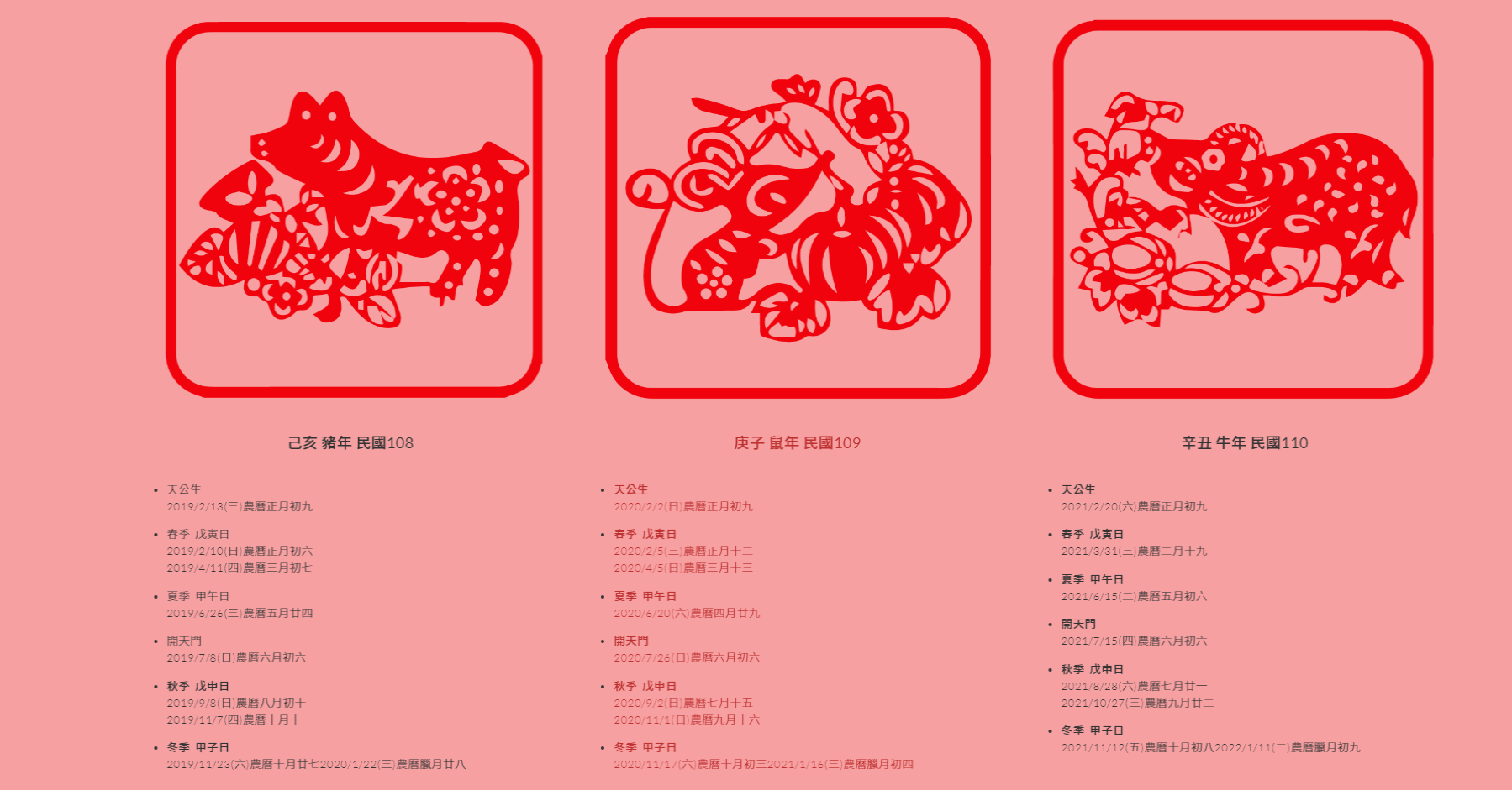 列出各年天赦日時間,方便知道何時該祭拜。