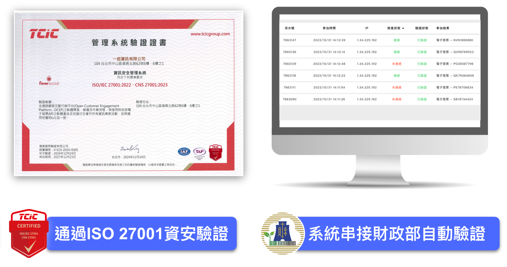 過去傳統做法多數透過人工審核,耗時耗力。發燒互動系統串接財政部 API,並通過 ISO27001 資安驗證,能合法、光明正大地讀取發票明細並自動驗證,大幅節省人力時間。