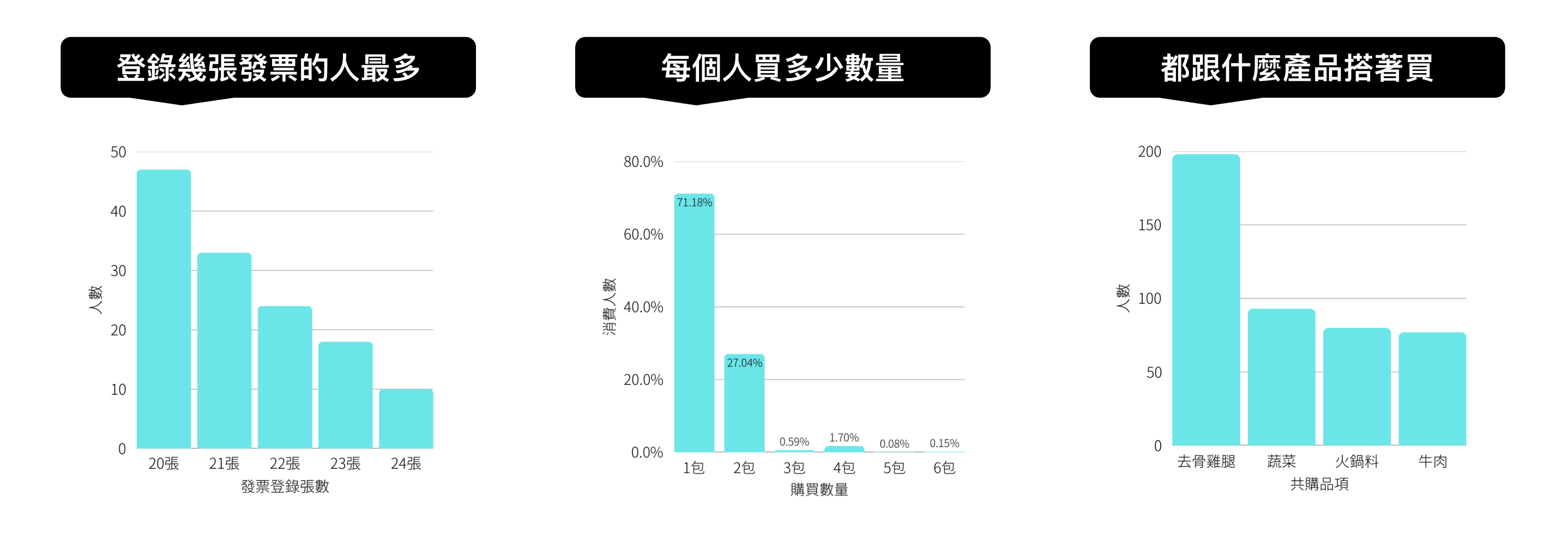發票明細能提供豐富數據,例如:登錄發票數量、每人購買數量、搭售什麼商品等。這些數據可幫助品牌分析顧客輪廓,挖掘消費洞察,作為行銷策略調整的依據。(延伸閱讀:數據洞察篇|你的真實顧客到底是誰?從發票數據挖掘你的黃金客群)