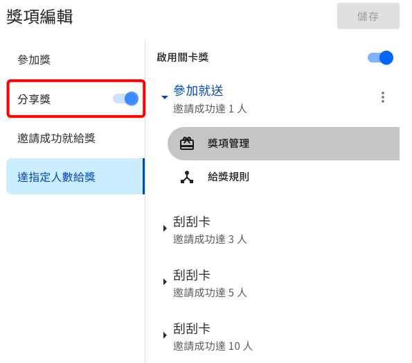 不過只要開啟分享獎功能,搭配階梯式的獎勵,設計貼近目標受眾喜愛的獎品,
