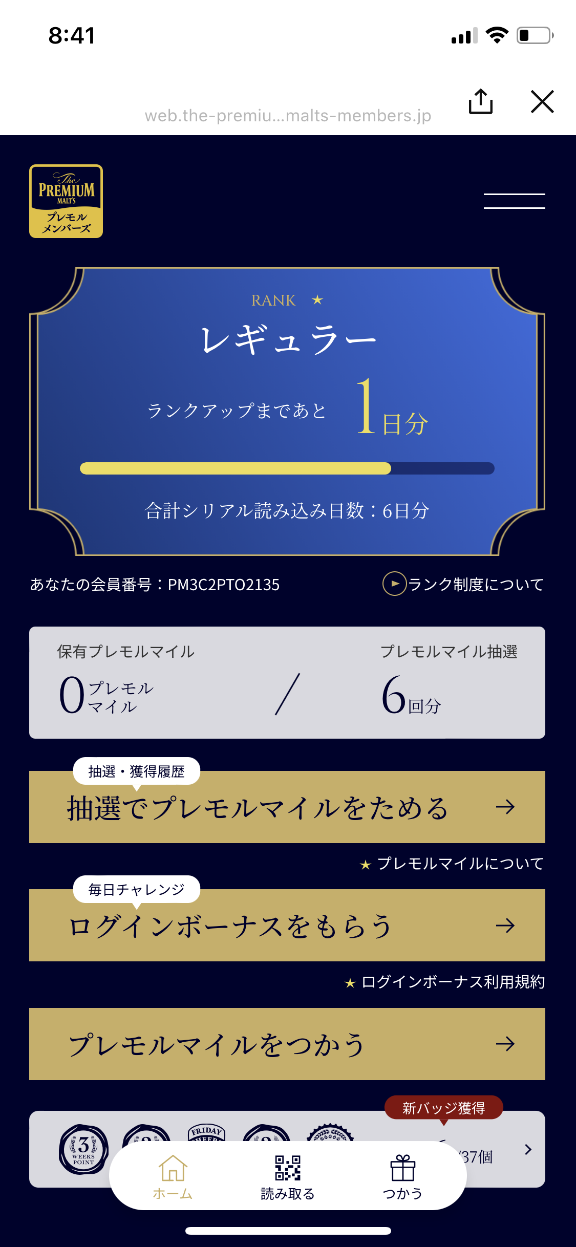 現在每次喝啤酒,就順便抽點數,其實非常有趣療癒。而且不同的節慶,或者不同日期(比如星期一)還會送你不同的徽章。小編我已經陸續搜集了好幾個!雖然徽章也不知道要幹嘛,但看了就很爽!台灣也可以玩玩,搞不好有一天還可以飛去日本兌獎!