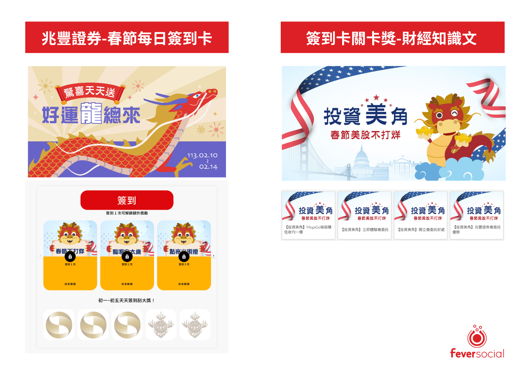 「在金融業做行銷,創新與合規之間需要拿捏得剛剛好,尤其是現在,投資理財的資訊隨處可見,要抓住客戶的眼球並不容易。這次我們透過 Feversocial 的每日簽到模組,成功在過年連續假期期間,於 LINE 平台聚焦一群對投資有興趣的客群,透過遊戲互動提升了客戶的回訪及轉換。更讓我們驚喜的是,這波活動不只是老客戶熱情參與,同時也吸引了一批新族群加入,讓整體互動效果超出預期!」