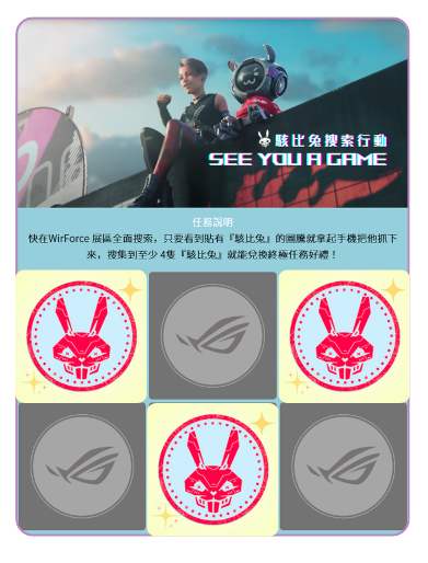 隱藏任務行動代號為「尋找駭比兔」,玩家須找出隱身於展區中的駭比兔布置物,找到1隻集1隻,集滿6隻就能兌換 OMNI 限量公仔。本篇案例將分享ROG團隊的活動創意設計,了解如何因應不同客群及場合,結合精心設計的場景與互動流程,提升參與感與趣味性,成功串聯線下、線上活動綜效,打造出一場極具吸引力的品牌「心」體驗。