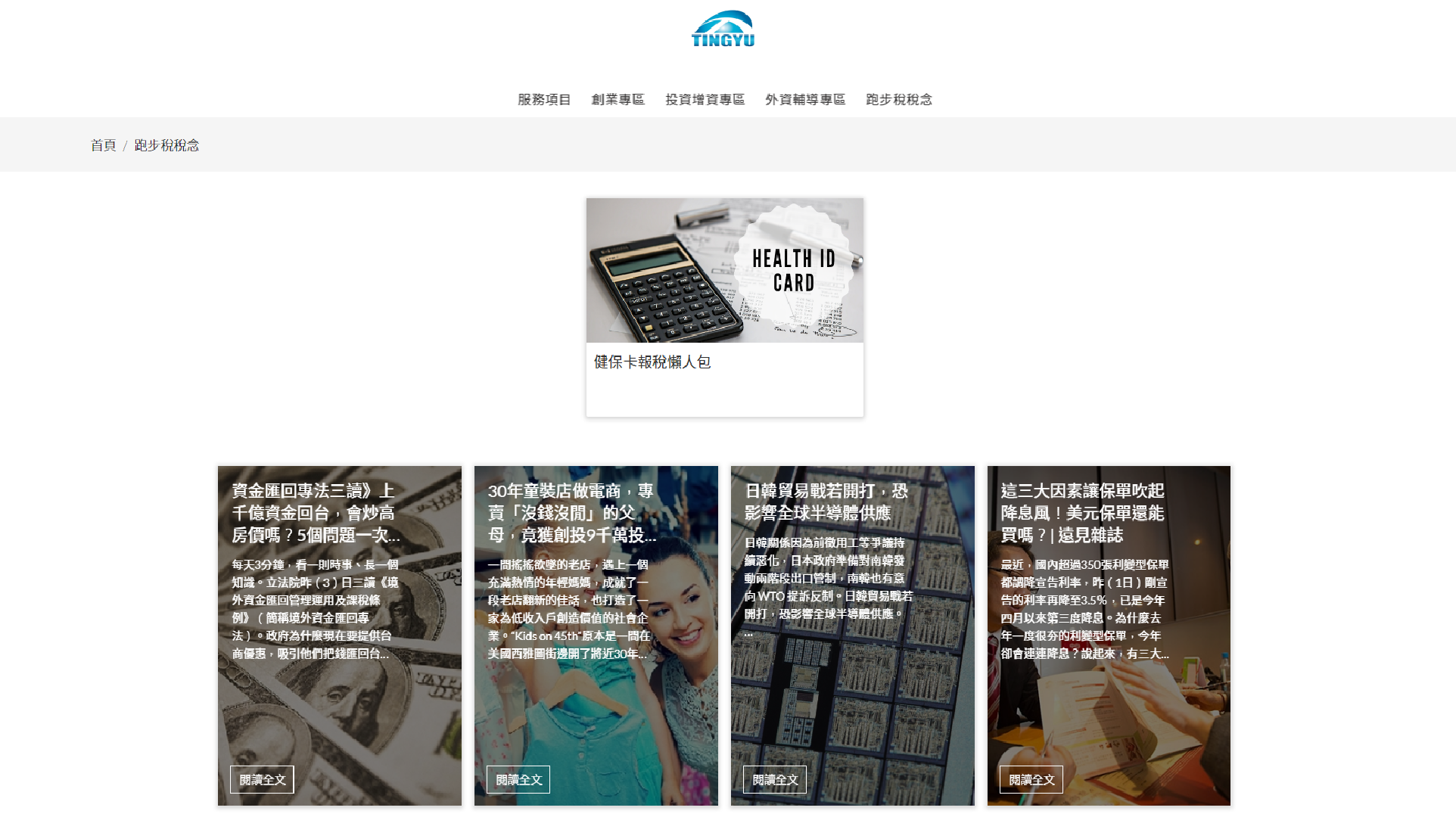 官網上的「跑步稅稅念 」專區。上排為時事資訊整理文章,下排為挑選過後的重要商業新聞。