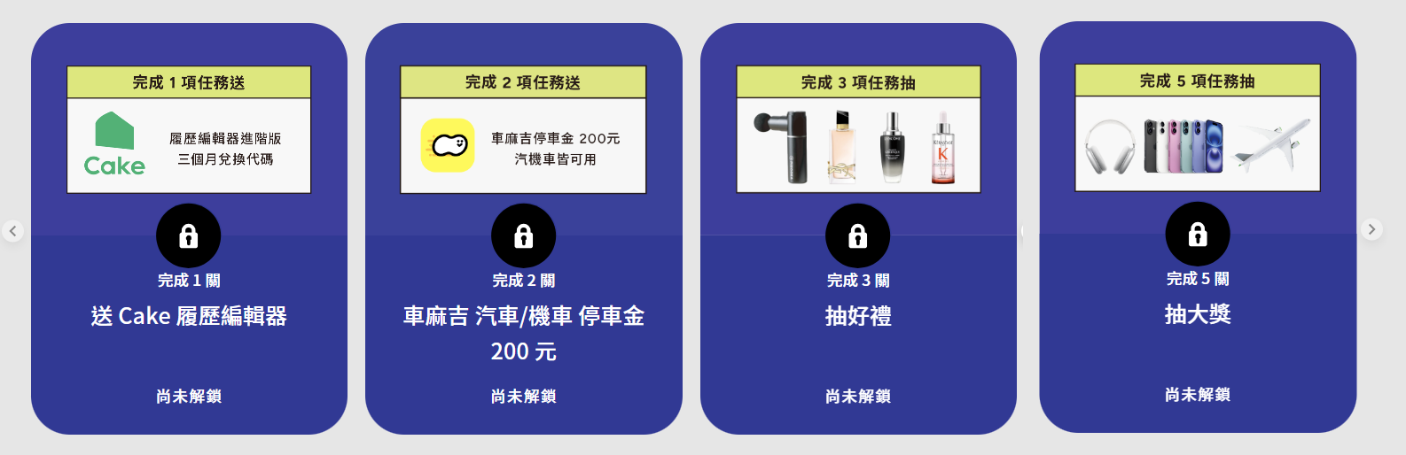 第一個任務設計成 0 門檻的"送分題",領取任務卡後,點擊即可完成,類似迎賓活動。但卻讓求職者直接解鎖了第一個關卡獎。闖關者從完成第一任務開始,除了解鎖獎勵,還獲得了一份成就感。再來看到下一個階梯的獎勵更是吸引人,就這樣很自然的在每一步的闖關過程,為解鎖感到上癮,從成就感得到了鼓舞。