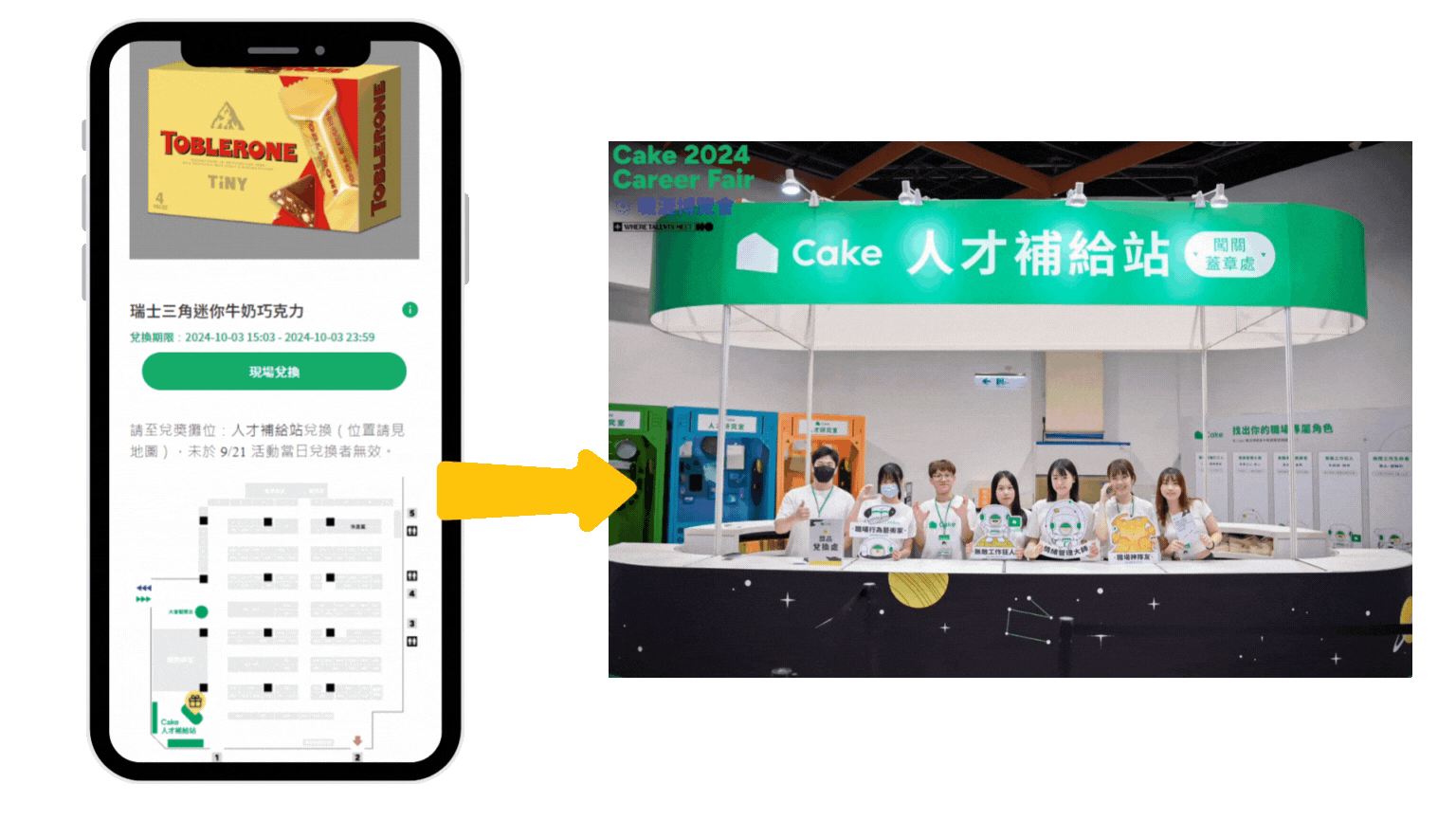 Cake 活動統籌人 Sean,任務目標很清楚的放在Cake 平台的流量池招募KPI、引導人流到場內指定地點、搭配活動發放贊助商贈品並管理兌換核銷這3個重點。