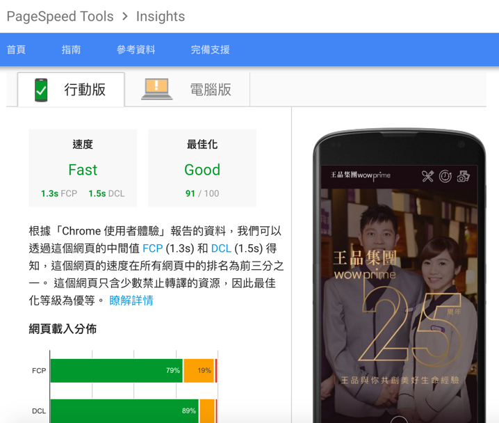 在 Google的速度測試工具中,我們不斷的翻新我們的紀錄。