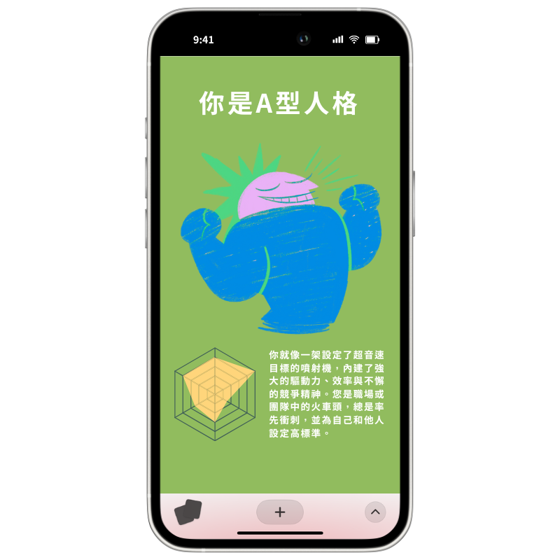 不再只是將用戶分類,AI 能根據答題情境與潛在動機,即時生成專屬分析文案。即使是同一類型人格,也能獲得完全不同的故事!