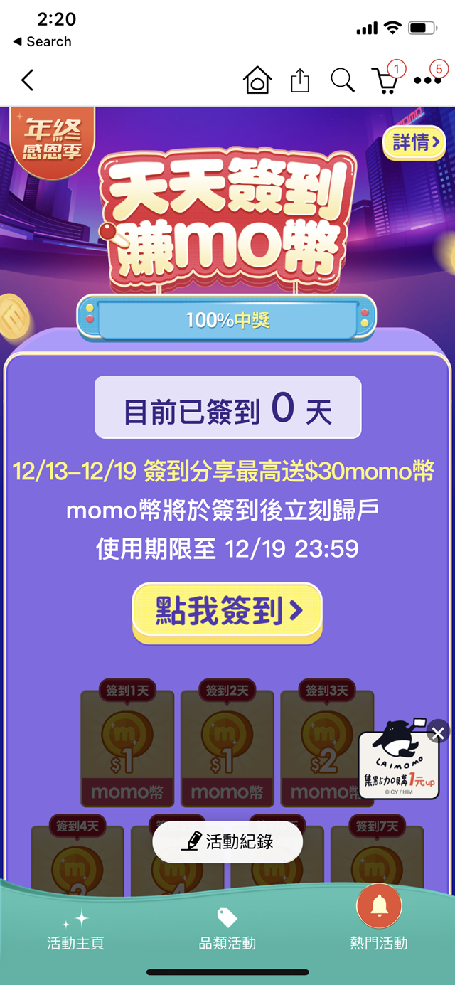 線上購物已經變成一種生活娛樂的日常,各大電商平台卯足全力,透過各種抽獎遊戲來娛樂消費者。User 真的要買東西嗎? 也許沒有,但天上掉下來的紅包哪有不搶的道理!每天簽到不用10秒就可以賺取點數,why not?這種「無痛集點」的策略真的是完全善用消費者碎片化的時間。