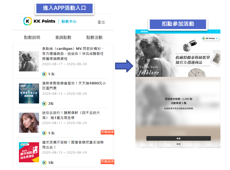 但這幾年技術發展與法規開放,越來越多 APP 開始發展支付並實現點數互轉的可能性。KKBOX 更進一步透過遊戲抽獎與異業合作夥伴來驅動會員使用點數參加。