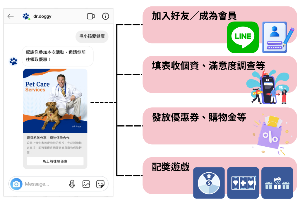 當用戶與你的品牌帳號互動,如何用自動化的方式主動出擊,遞出可口的轉換誘因,同時讓粉絲在流程中好感度提升願意為品牌做更多口碑分享?