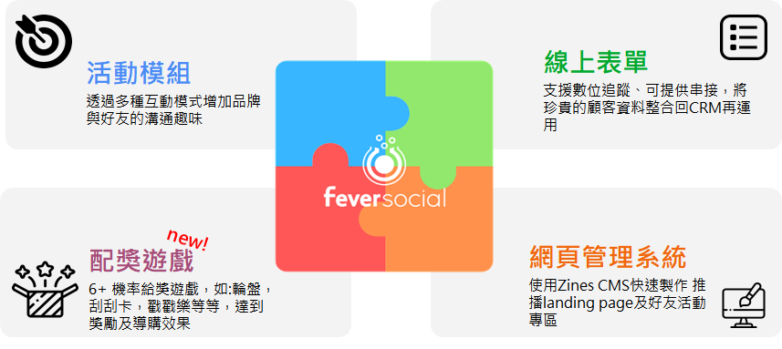 發燒互動的工具可以應用在招募好友、深化溝通、導購活動及口碑分享等不同的行銷階段,一套工具,多種用途!
