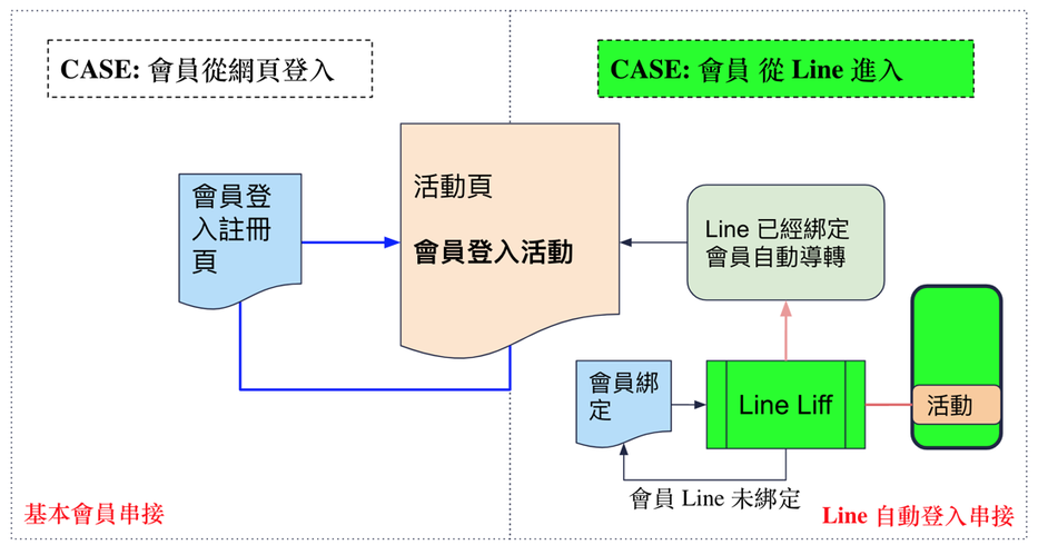 | 互動模式 | 在 LINE LIFF 環境開啟行銷活動網頁 | LINE 官方帳號內設計對話腳本 |