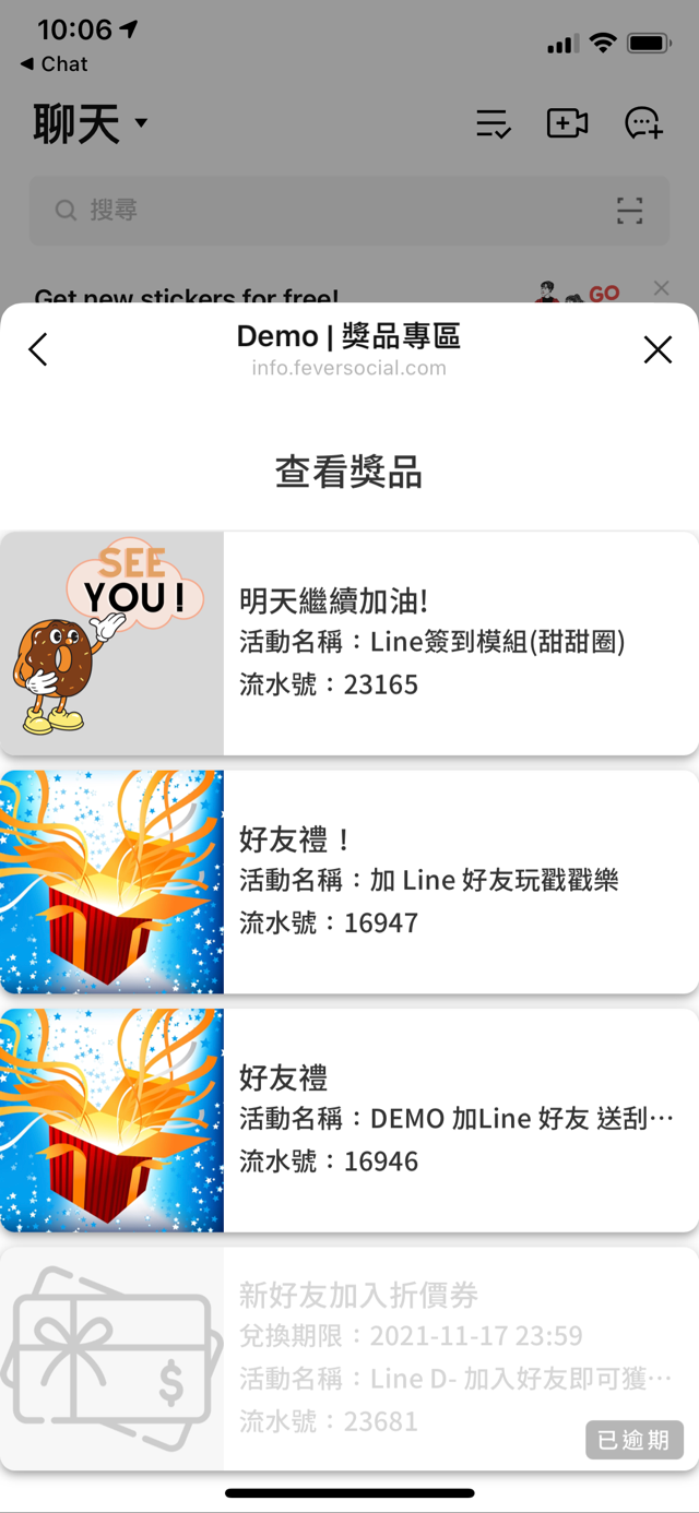 集合 LINE 好友參加活動所獲得的所有獎品與優惠券,可以快速查看,輕鬆找回優惠券!