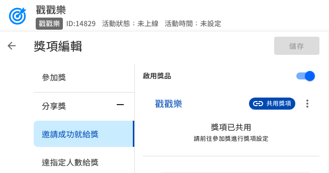 你可以幫分享獎建立分開的獎勵,也可以共用活動既有的獎池。