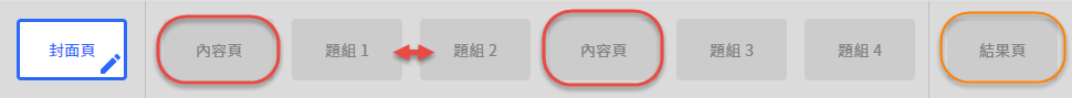 你可以在編輯流程中任意安插內容頁和題組頁,也可以重新調整題組順序 !