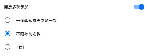 除了登入身分的多元性,亦可設定投稿/投票的次數,增加每天回訪的可能性,提升活動的熱絡度。