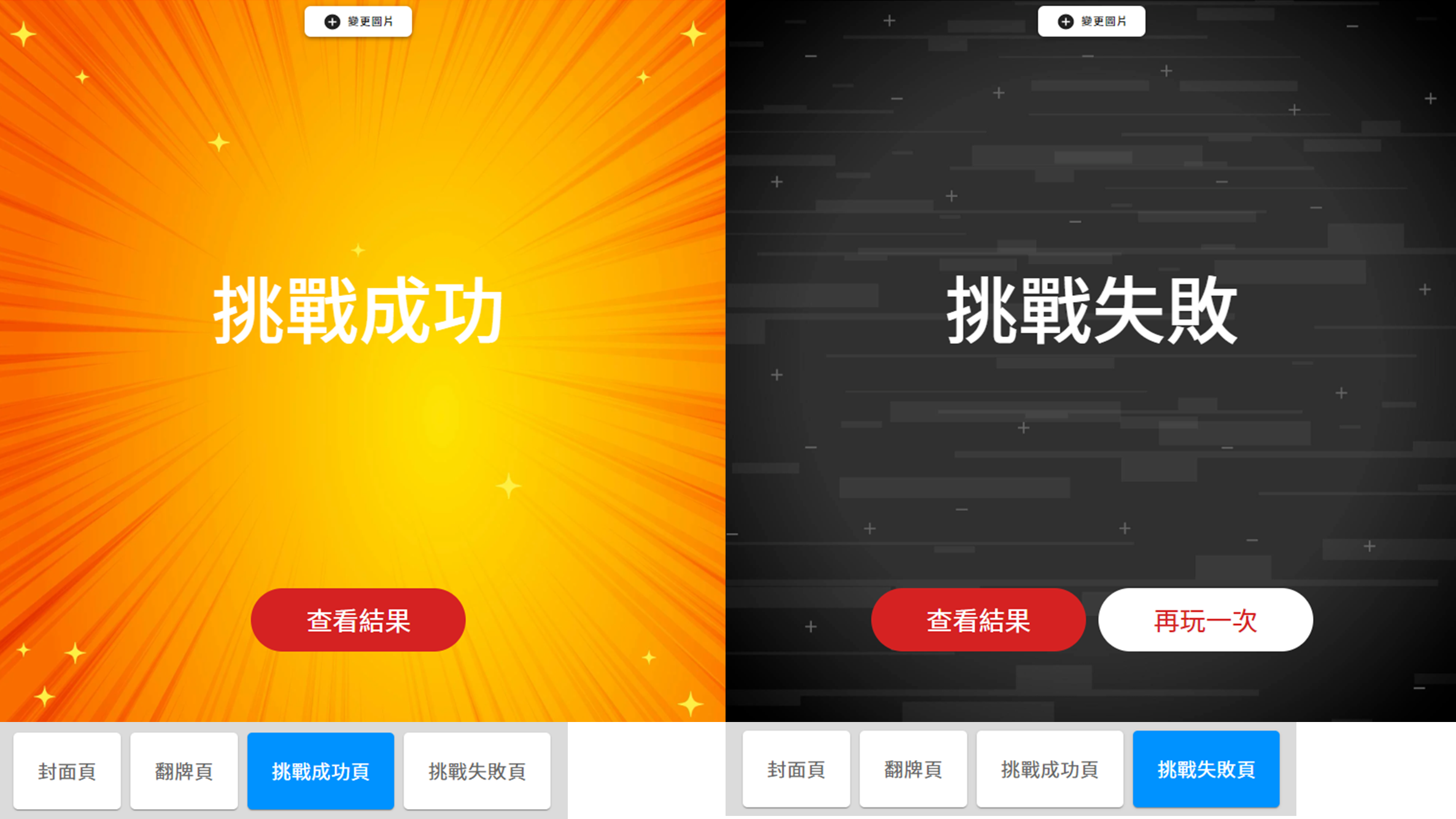 挑戰結果頁 ─ 成功、失敗各可以有不同的呈現頁面