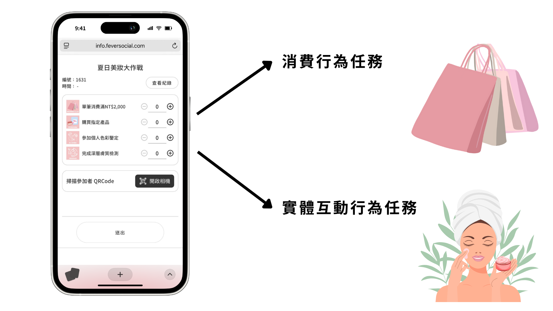 可將品牌任何希望顧客在線下完成的行為任務化,不只限於「消費行為」,更能自由設定其它各種「實體互動行為」任務,讓品牌的互動創意無限延伸!