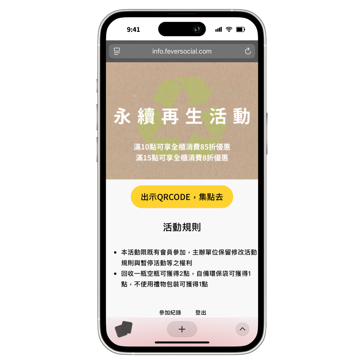 搭配發燒互動點數系統與兌點模組,讓顧客可持續完成任務累積獎勵、養成回訪習慣,增加顧客整體續航力!