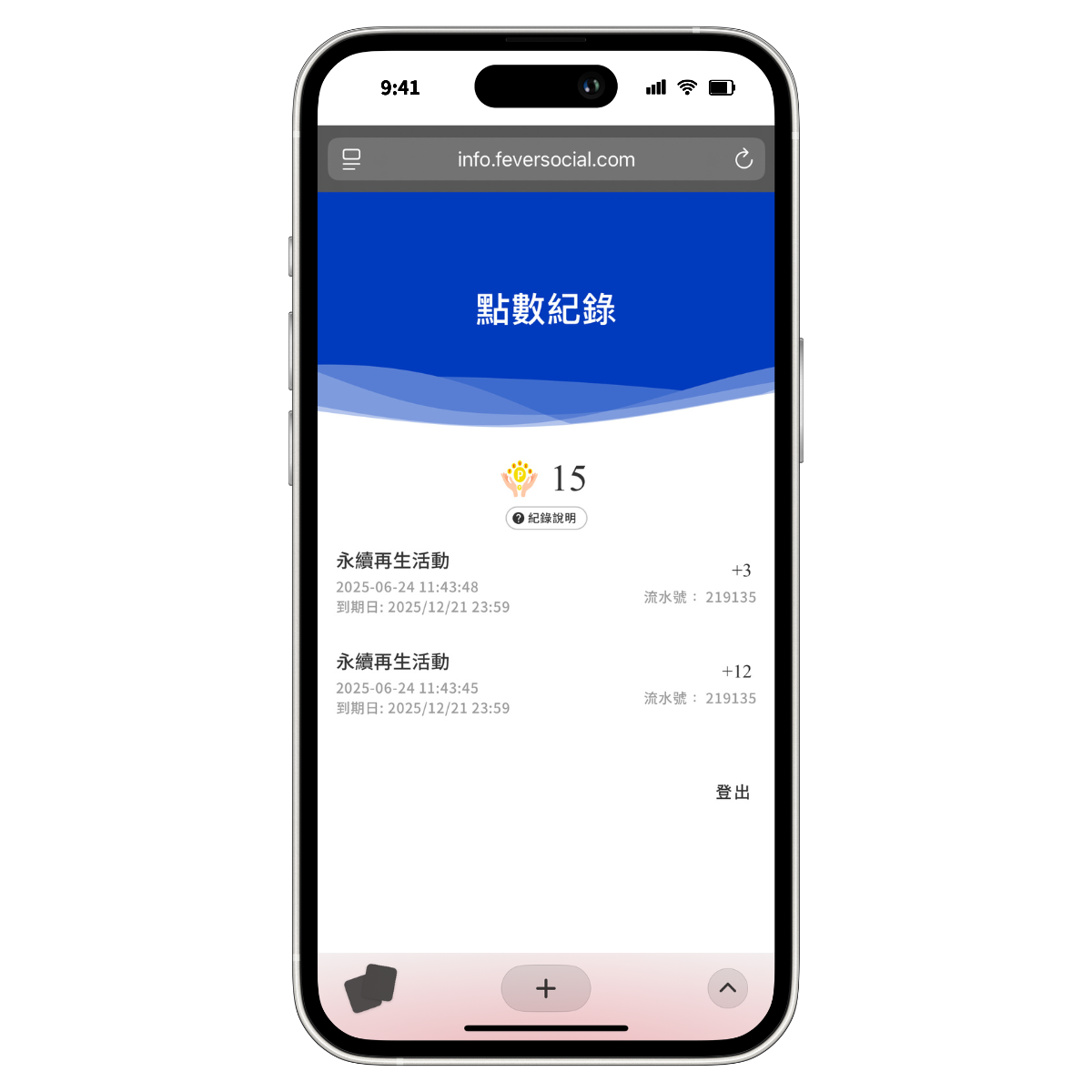 ➌ 顧客於點數中心可完整看到每次參加活動的點數歷程紀錄