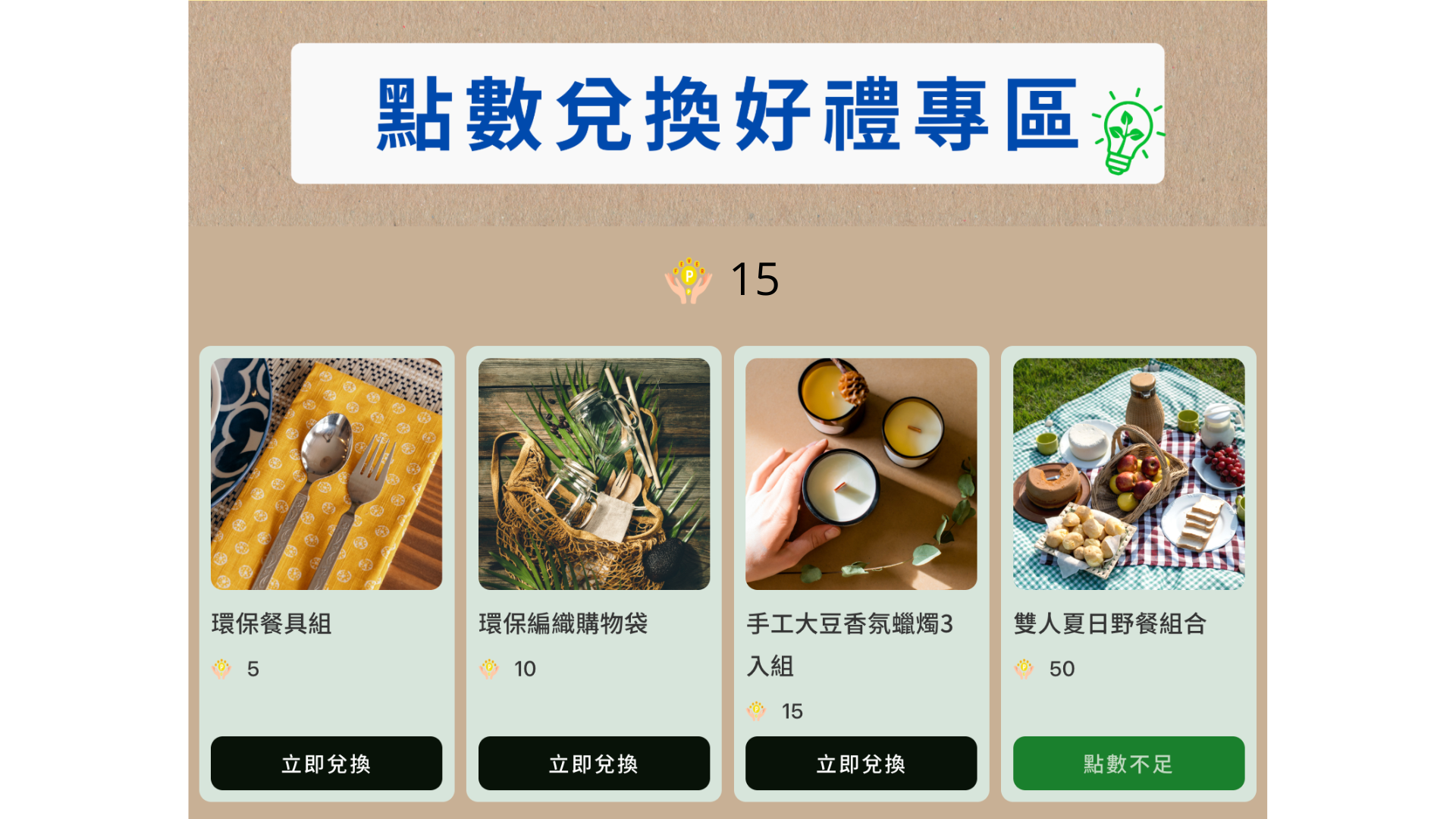 品牌設計環保集點計劃,鼓勵顧客採取「消費」與「環保公益」行動,實際支持永續公益精神