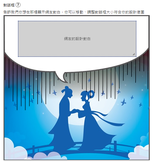 設定時,先上傳圖片,再輕鬆拖曳編輯區塊到底圖預留的文字區塊即可。