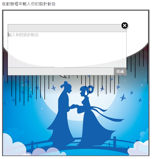 參加者填入對白內容,就會合成一張圖,可以分享到 Facebook。