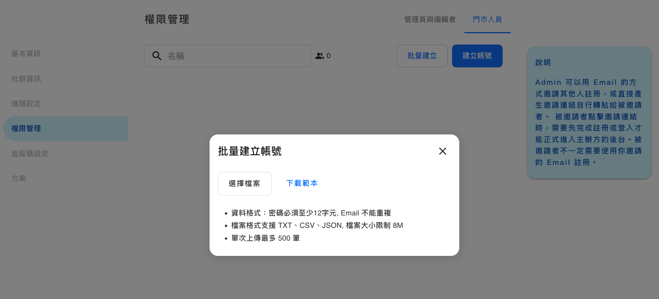 若品牌擁有多間門市,可一次性批量為各據點門市人員統一建立帳號,大幅提升管理效率