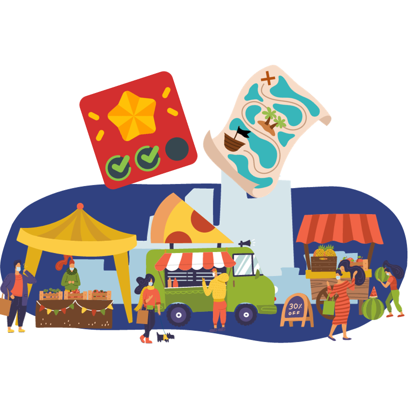 規劃「尋寶遊戲」,引導顧客到攤位/商家完成任務並領取獎勵