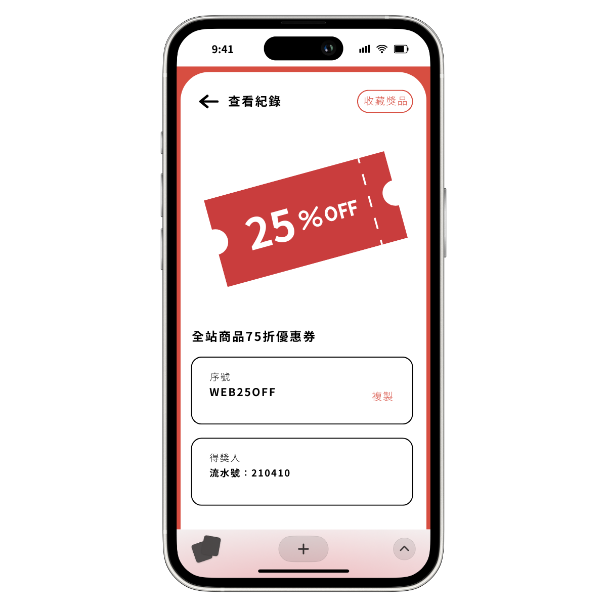活動也支援限定活動通關序號,不僅提升活動的獨特性,還能為訪客創造專屬的體驗,強化用戶的專屬感,讓訪客更有動力參與互動!