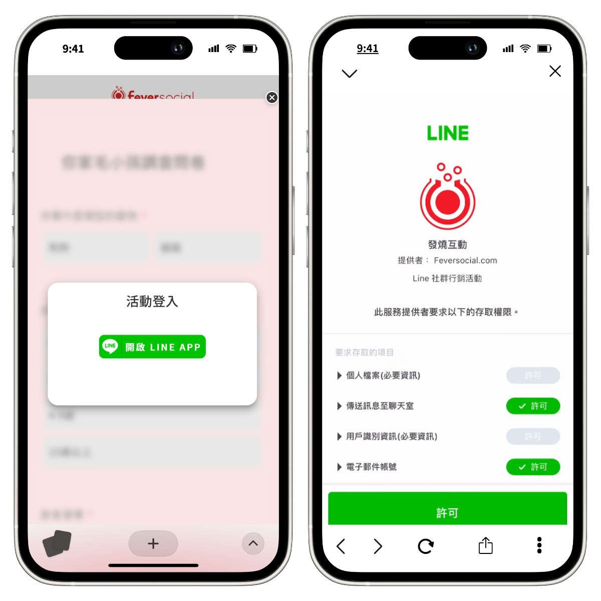 訪客點擊後跳出活動LINE登入畫面,授權加入好友後開始填答問卷