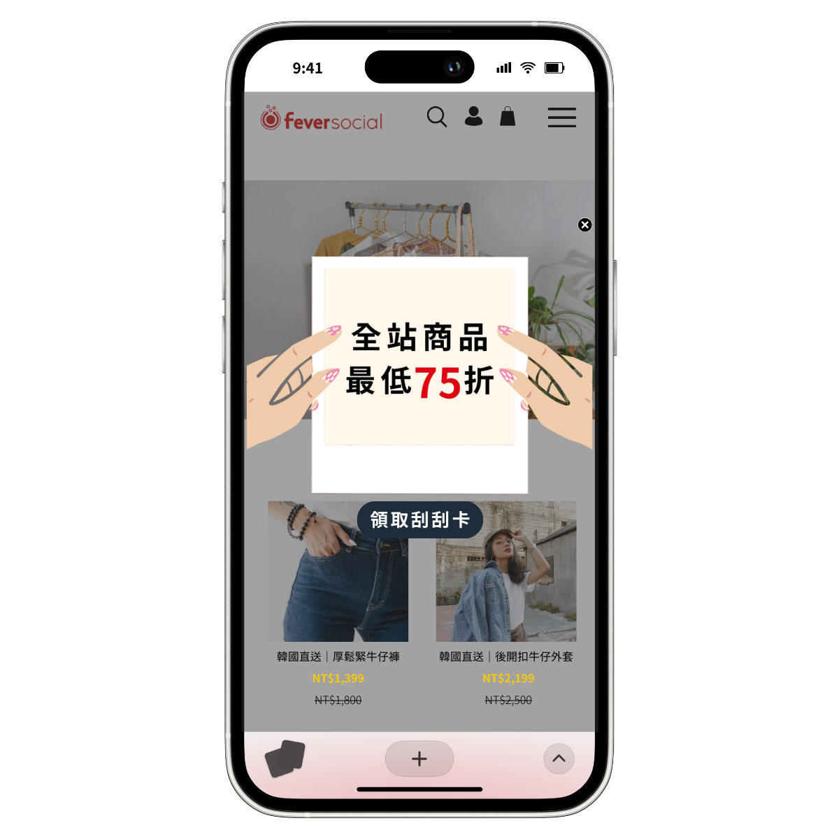 訪客在逛電商網站時,可設定過5秒跳出「彈跳視窗」,引導他們去刮刮卡試手氣