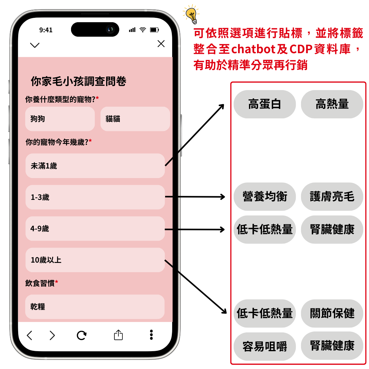 模組內建表單及貼標功能,可將收集到的資料拋轉到品牌自己的CDP、CRM系統,有效充實顧客的輪廓資料!