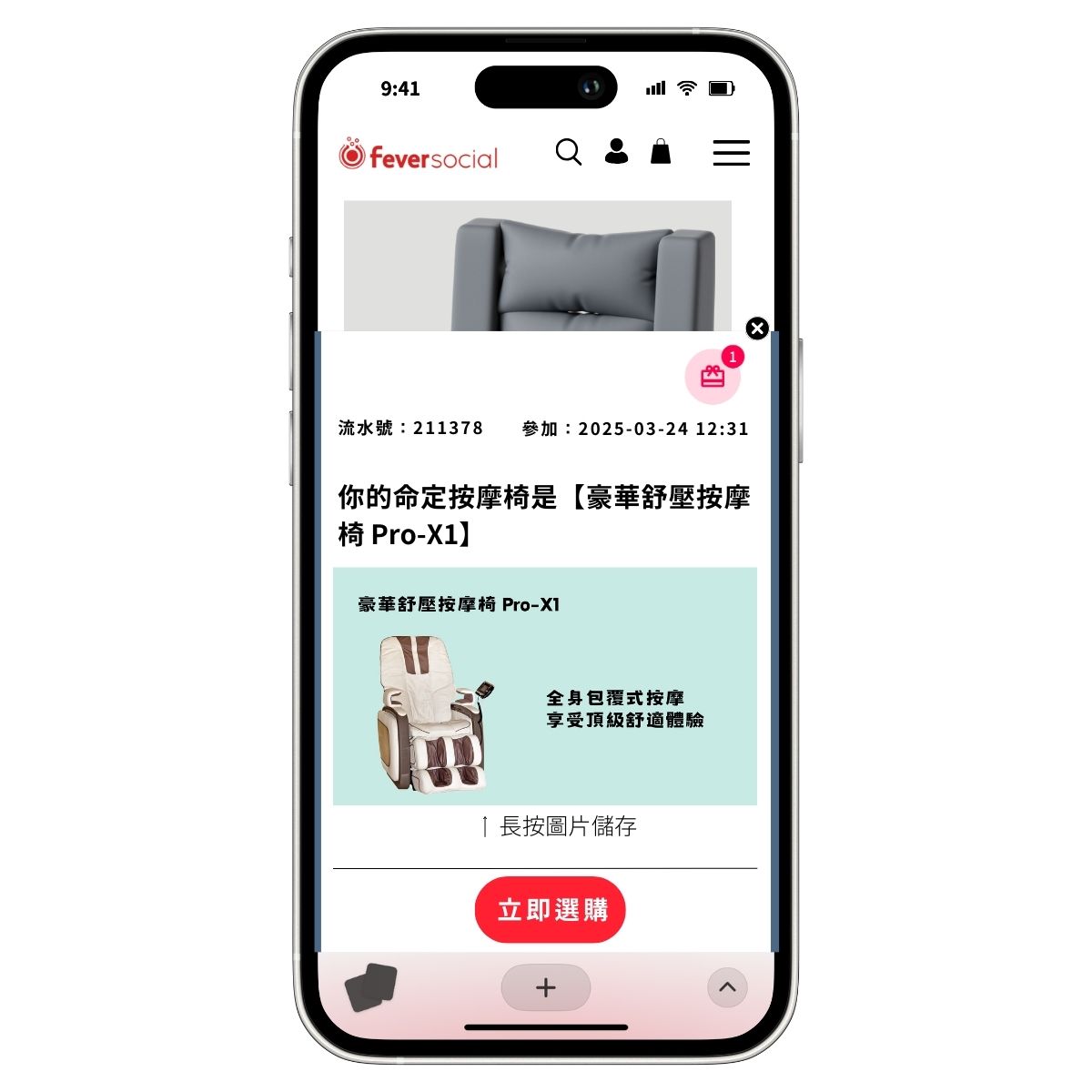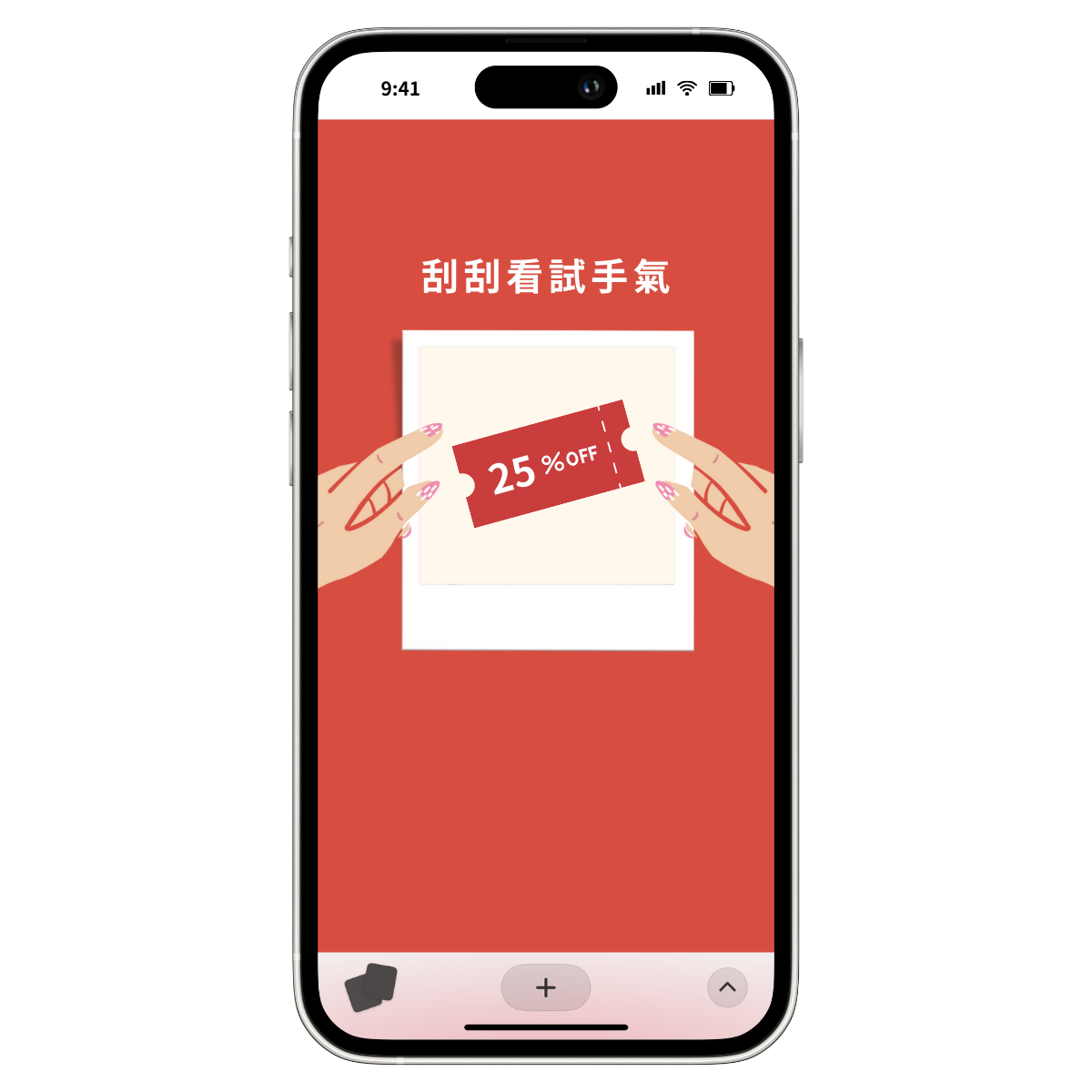 點推播參加互動後可立刻派送優惠券及購物金等獎勵,有效減少訪客猶豫,加速轉換流程,最終提升銷售轉換率!