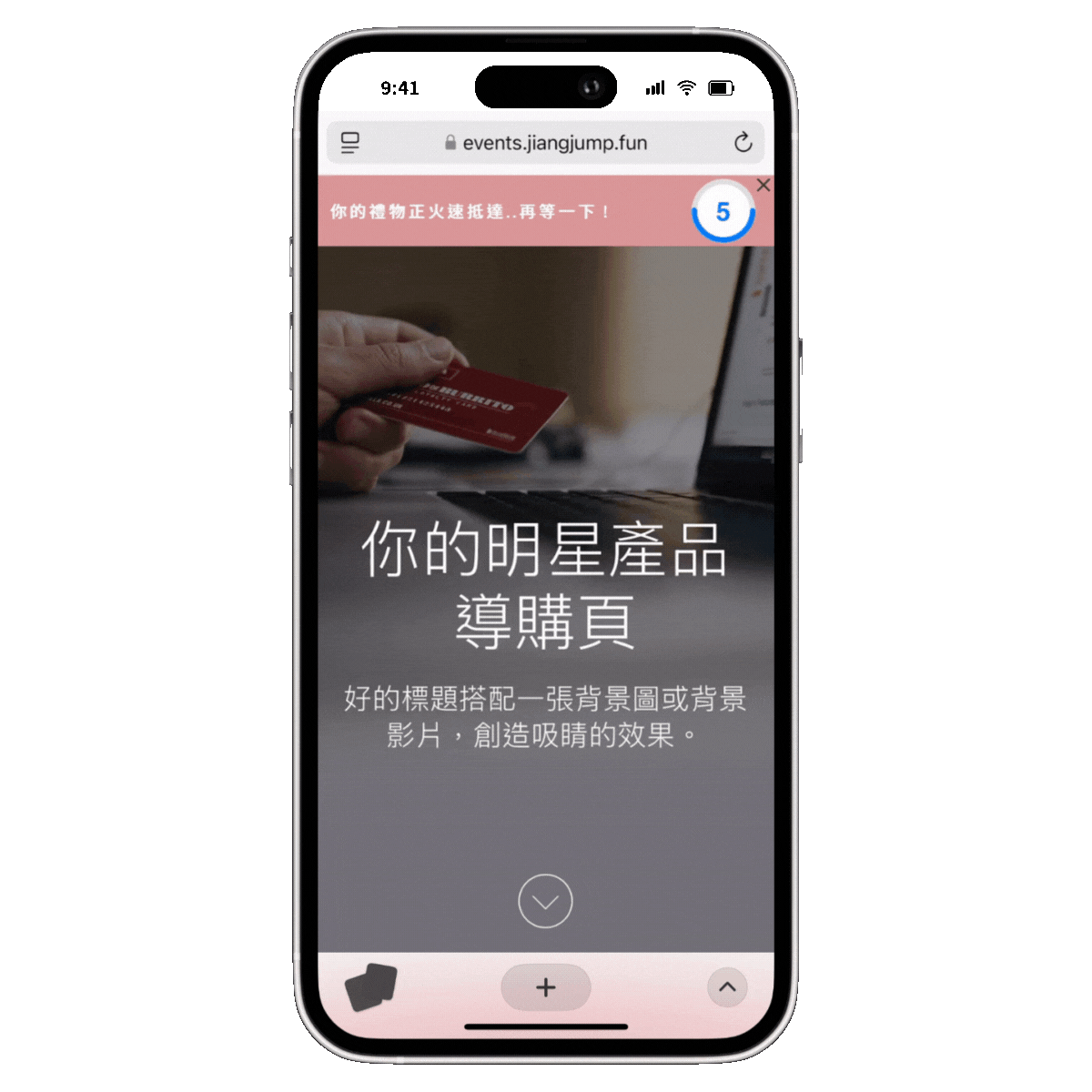同時我們的網頁推播也具備「限時任務」設計,設定倒數時間後,顧客須在「限定時間內」完成點擊,否則倒數結束後訊息會自動消失。透過時間壓力與FOMO心理創造立即行動的動機,有效縮短顧客猶豫時間、提升整體轉換率!