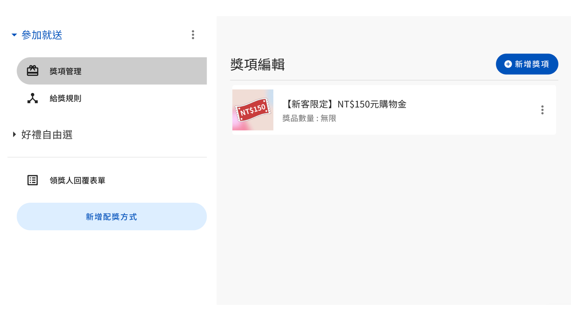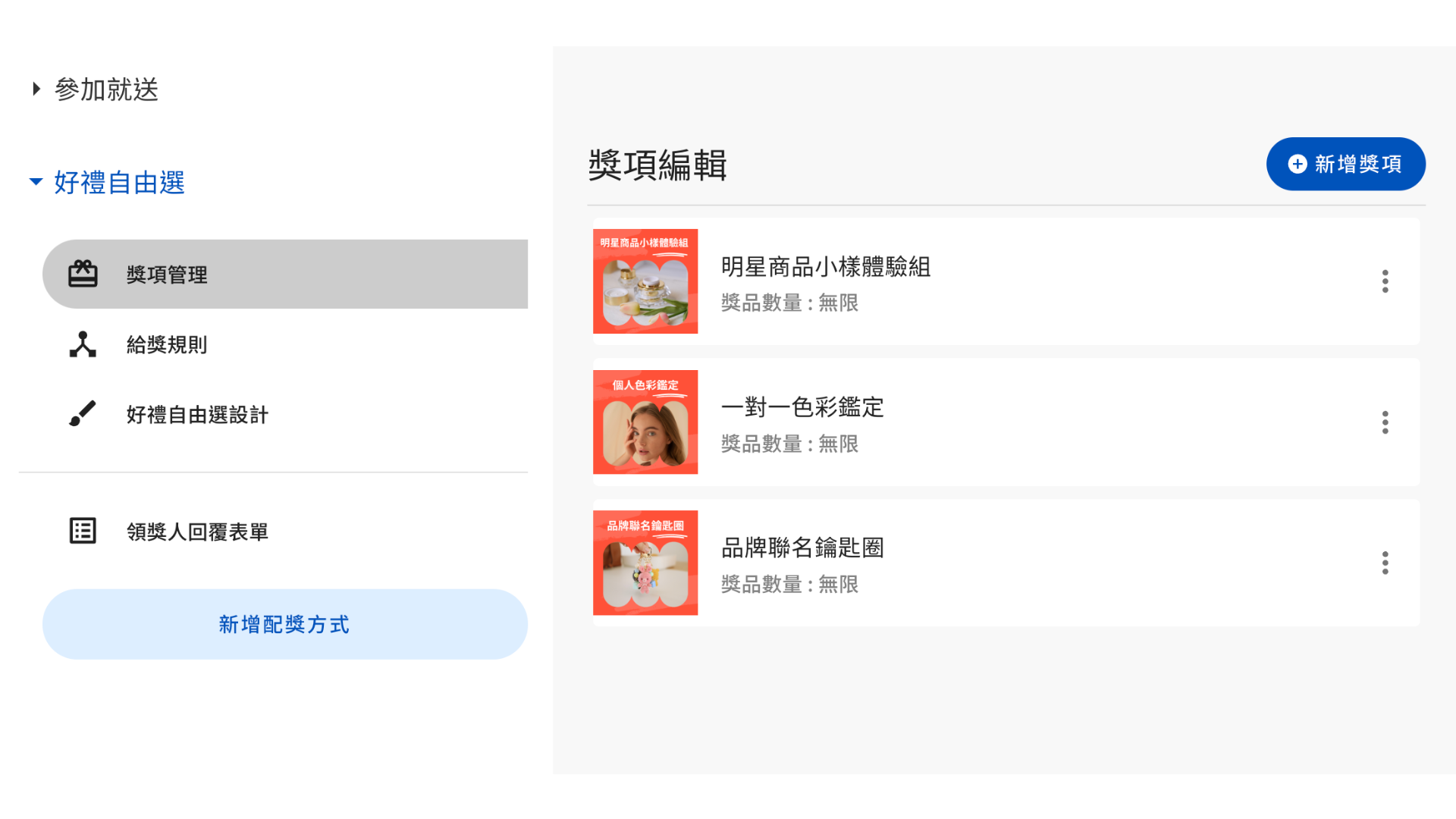 *可於「給獎規則」設定參與者最多能領取的獎品數量或是可領取所有獎品。